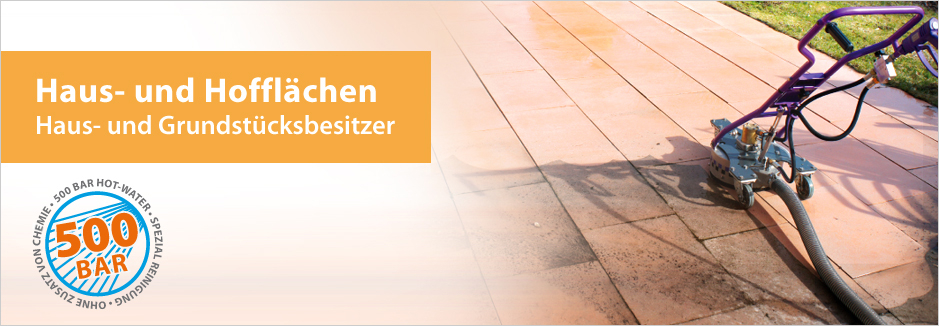Je nach Belag und Verschmutzung erreichen unsere Maschinen durch Heißwasser mit bis zu 500 bar Druck und einer Temperatur von 155° Celsius eine intensive Tiefenreinigung. Die hohen Temperaturen vernichten die Sporen der Moose, Algen und Flechten so gründlich, dass eine nachhaltige Wirkung gegen Vergrünung erreicht wird.